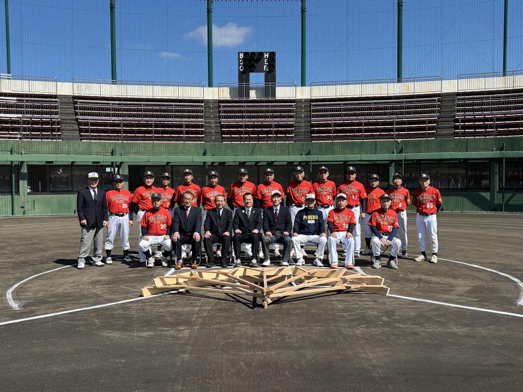 福井県還暦軟式野球連盟様ならびに丹南古希クラブ様からグラウンドレーキをご寄附いただきました!
