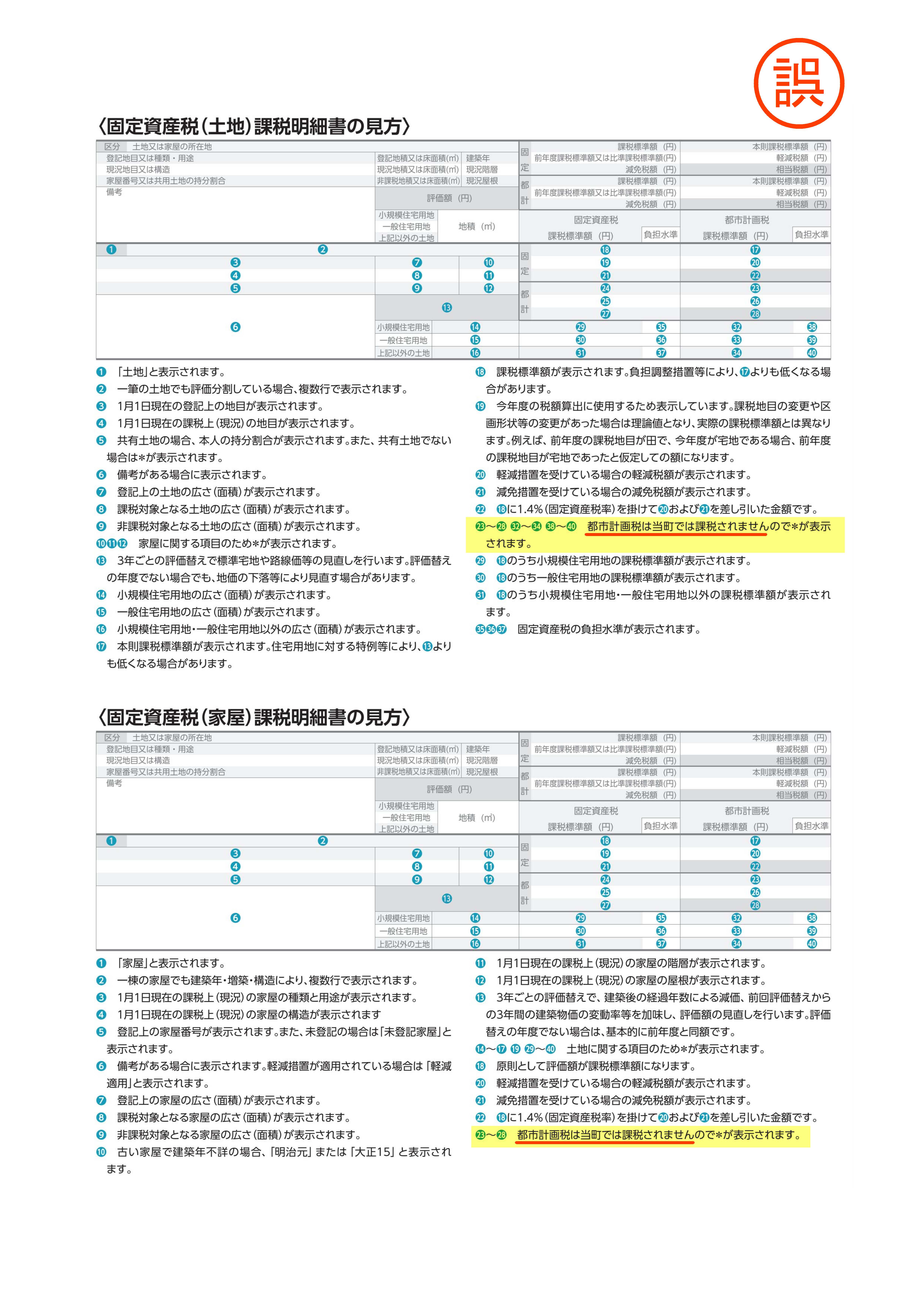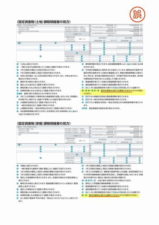 固定資産税「課税明細書の見方」の記載誤りについて