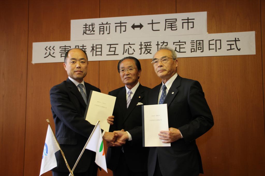 6月には市地域防災計画「原子力災害対策編」の準備会議、12月には市防災会議に専門部会を設置しました。また、10月に石川県七尾市と、11月には京都府宇治市と原子力災害や自然災害を含めた相互応援協定を締結しました。
