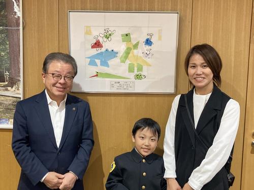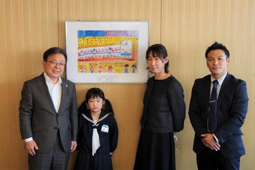毎月、市内小中学生の描いた絵が市長応接室に飾られます。