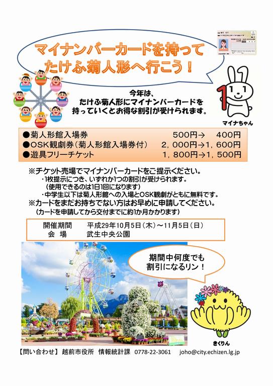 マイナンバーカードによるたけふ菊人形の割引について 平成29年8月8日