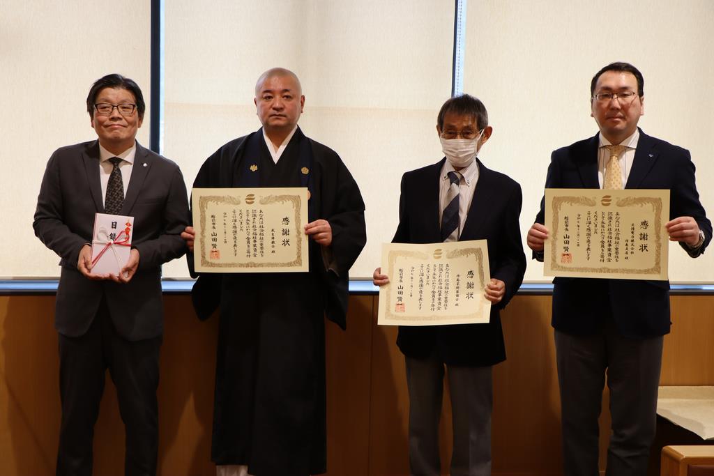 令和4年12月23日に、武生佛教会様、丹南芸術家協会様、北陸電力株式会社丹南支店様から、令和4年11月26日から12月3日にかけて開催された第48回歳末チャリティーオークションの収益金のうち17,810円を、福祉基金にご寄附いただきました。