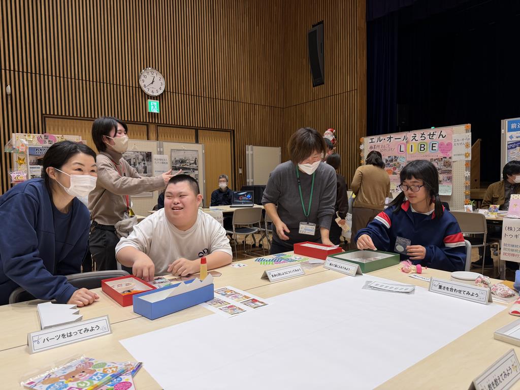 越前市・南越前町・池田町の3市町が合同で、障がいのある人の就労支援事業所がブースを設置して、事業所での働き方やサポート体制等を紹介しました。