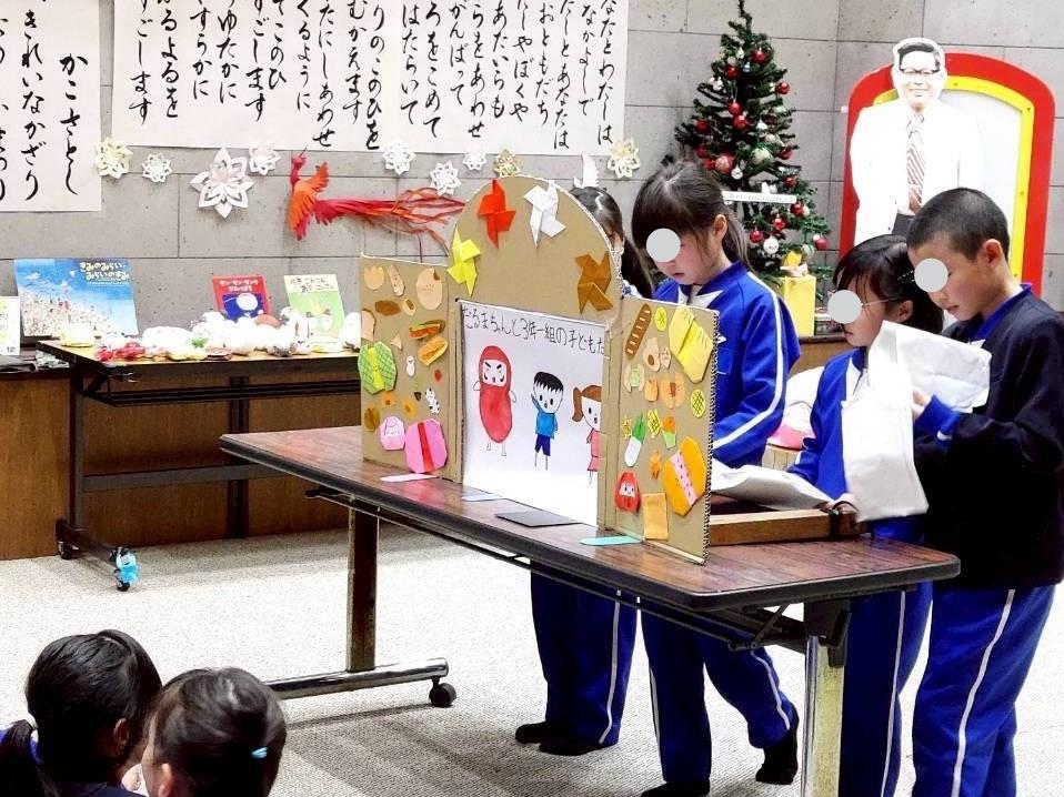 武生西小学校3年生の皆さんが開く『かこさとしさんの生たん100年を祝おう!』の会に参加してきました。会場は、かこさとしふるさと絵本館「砳」。「からすのパン屋さん」の劇やオリジナル紙芝居「だるまちゃんと武生西小学校」、ダンス「コウノトリのコウ ちゃん」など、かこさとしさんにまつわる出し物がたくさんありました。地域の方や保護者など多くの観客と一緒に楽しませてもらいました。3年生の皆さんのかこさとしさんへの尊敬と愛情が感じられる温かい会でした。