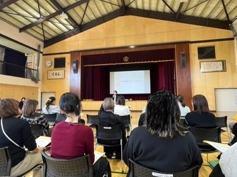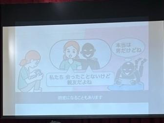 味真野小学校の入学説明会には、例年校区の2園(二葉保育園・味真野保育園)から5歳児クラスの担任が参加されています。学校からのお話に加えSNSの危険性について考える『ネットリテラシー』の話もありました。(ひまわり教室/警察署)