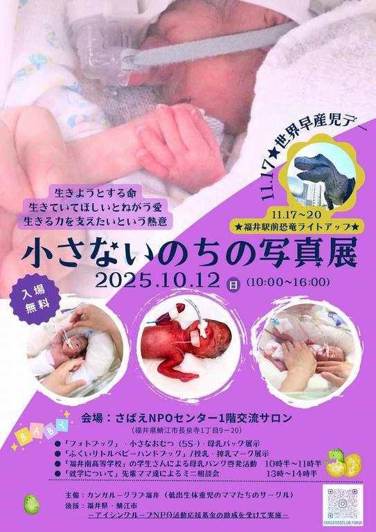 「小さないのちの写真展」とは、NICU・GCUに入院中・卒業したママのつながりの場であるカンガルークラブ福井が主催する写真展です。小さないのちの成長記録を見てみませんか。