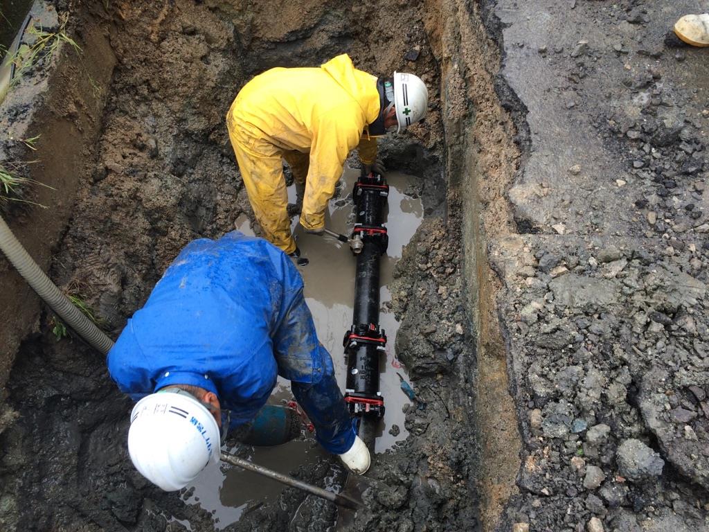 漏水調査により漏水箇所を発見し、管路の修繕を行いました