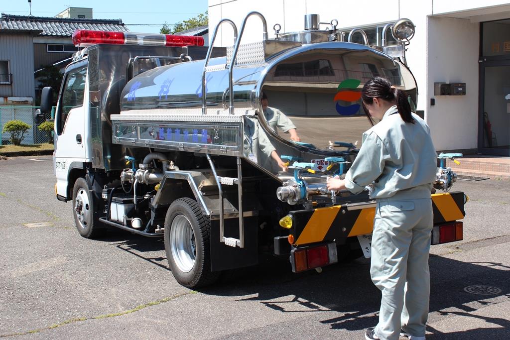 福井県支部の応援隊として本部調整班3名、応急給水班2名、給水車1台で訓練に参加しました。10月27日(木曜日)は伝達訓練を行い、10月28日(金曜日)は訓練会場である敦賀市で実施訓練を行いました。