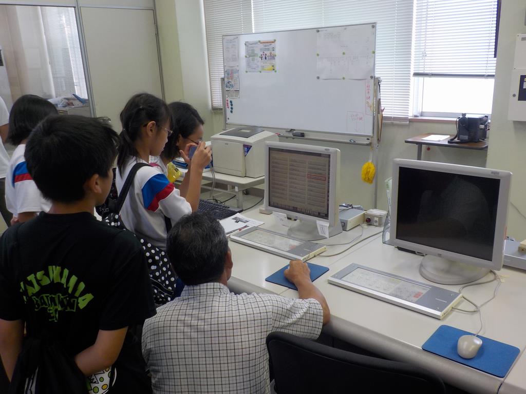 初めての浄水場施設に興味深々で、職員の説明をしっかり聞きながら、