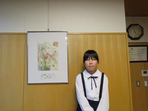 現在南越中学校3年生の本好美結さんが描かれた「校門から見た景色」の絵が飾られています。