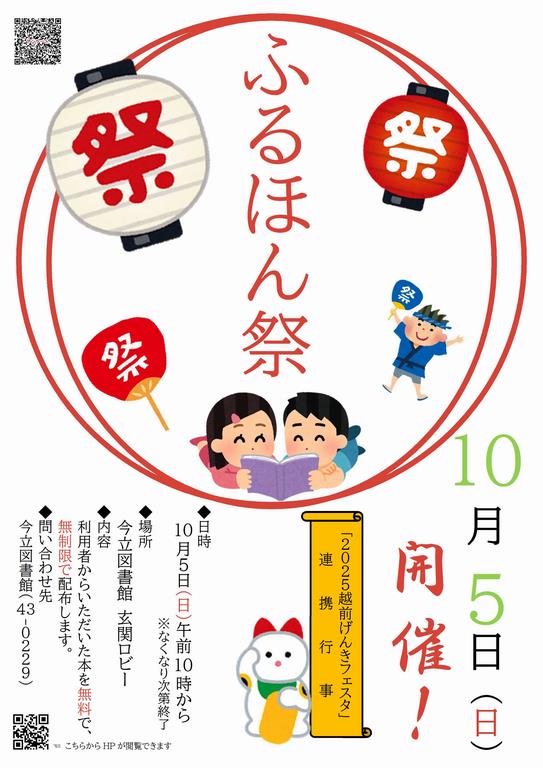 *今立図書館* “もらい放題!取り放題! ”、ふるほん祭だよ!! 令和7年10月5日