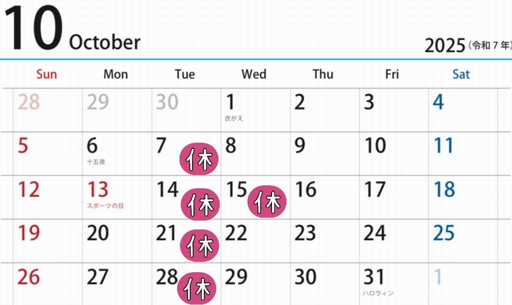 10月15日水曜日)は、祝日振替のため、休館日となります。