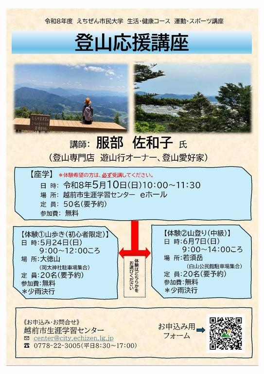 えちぜん市民大学「登山応援講座」を開催します。